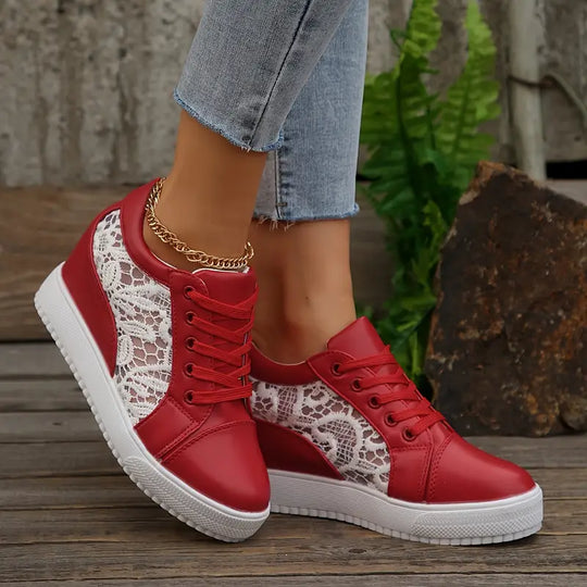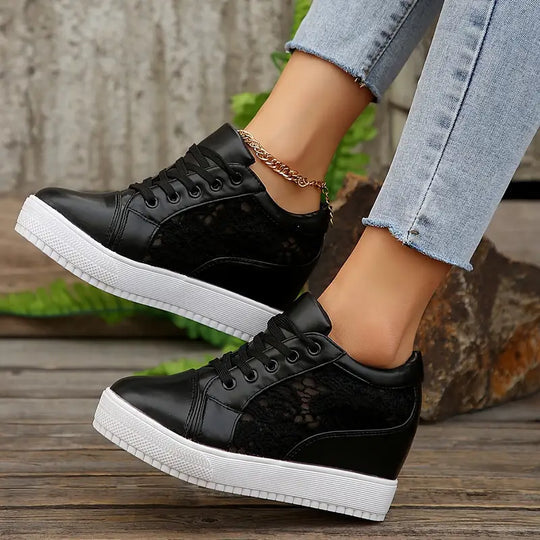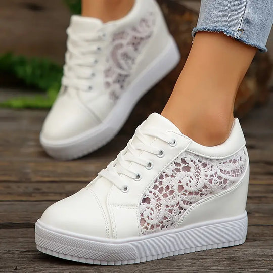 Yora | Baskets Compensées Femme à Motif Dentelle - Respirantes et Élégantes