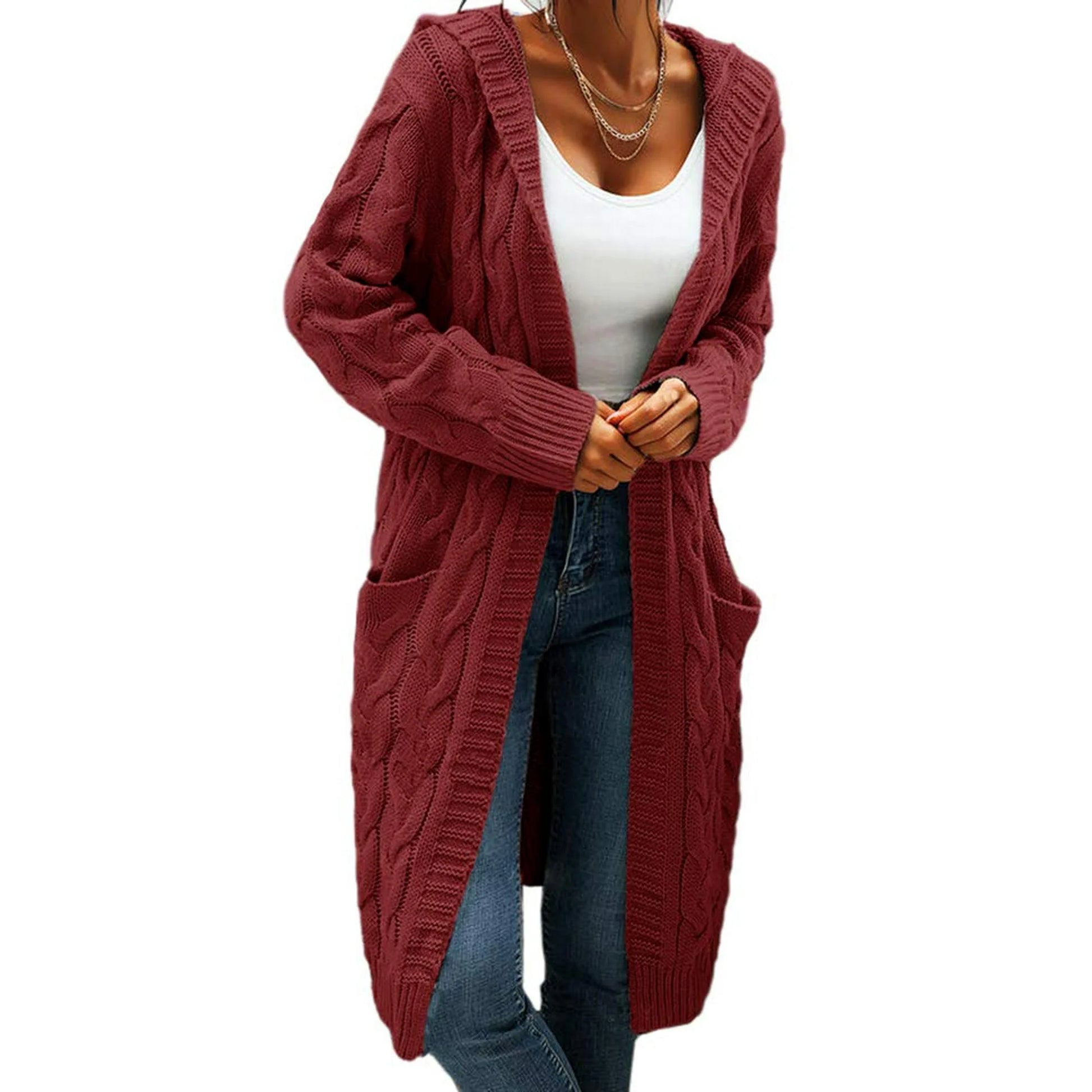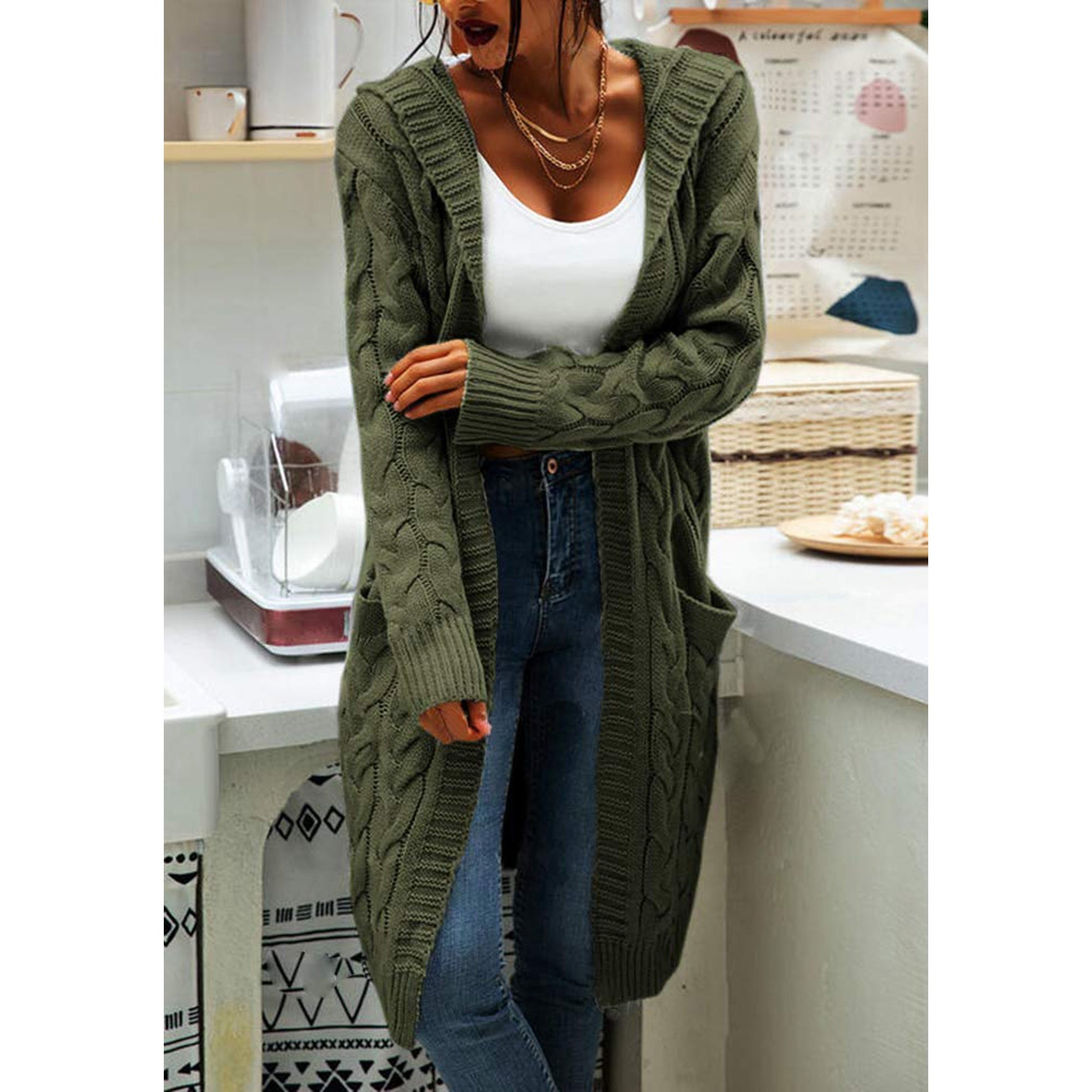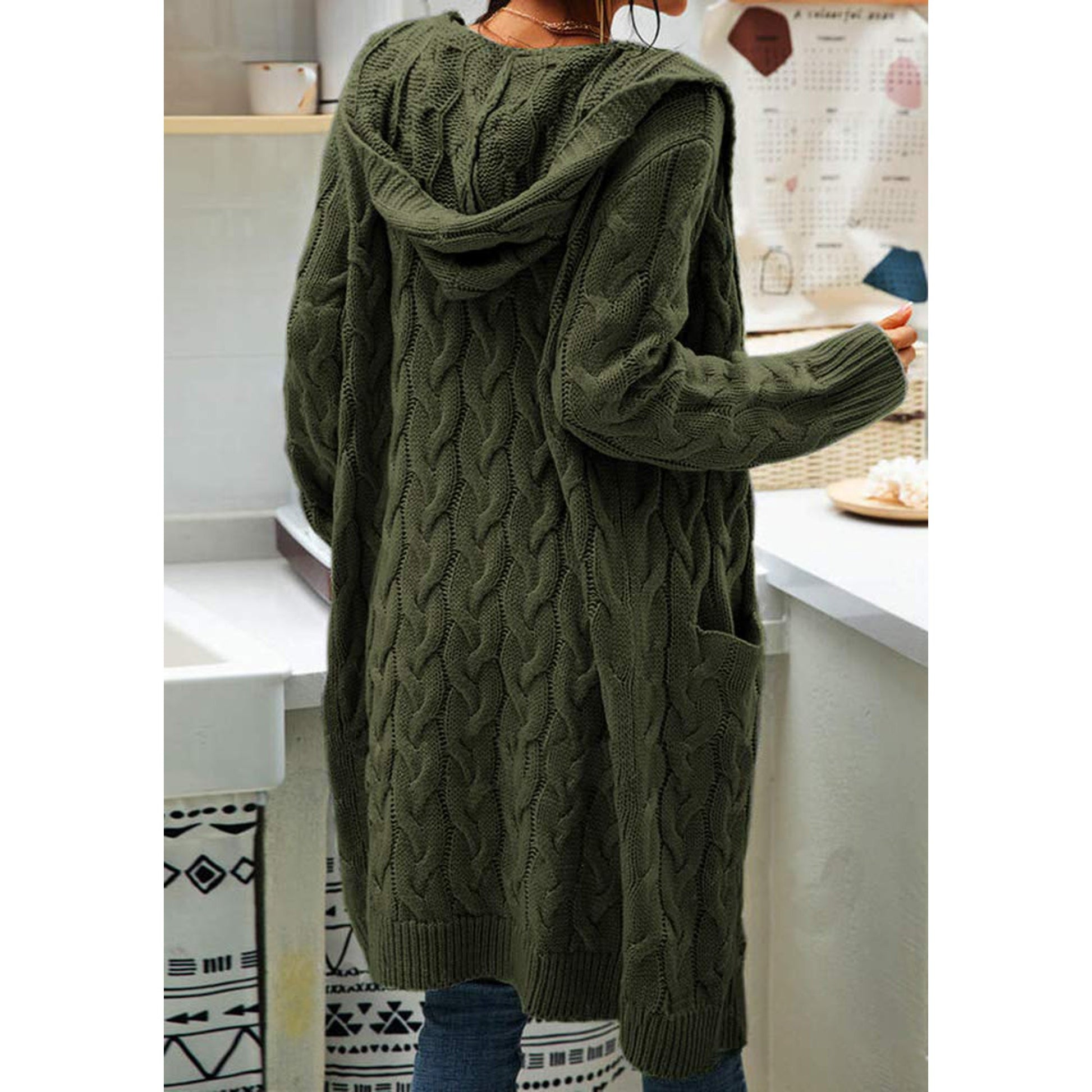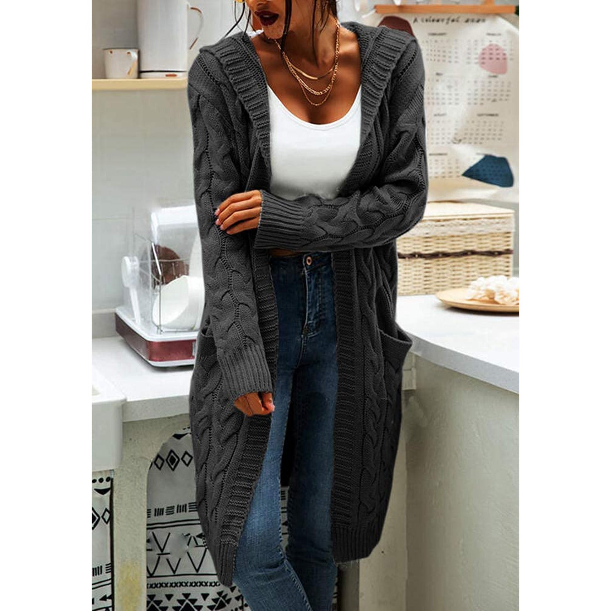 Brenda | Cardigan Long en Grosse Maille avec Motif Torsadé