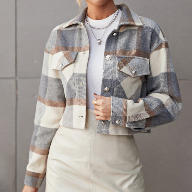 Adoptez un look tendance et polyvalent avec la veste Cammila. Cette veste à carreaux courte ajoute une touche chic à votre tenue de printemps, tout en restant confortable et légère. Ses boutons pratiques et ses poches spacieuses en font un choix idéal pour compléter votre garde-robe quotidienne.