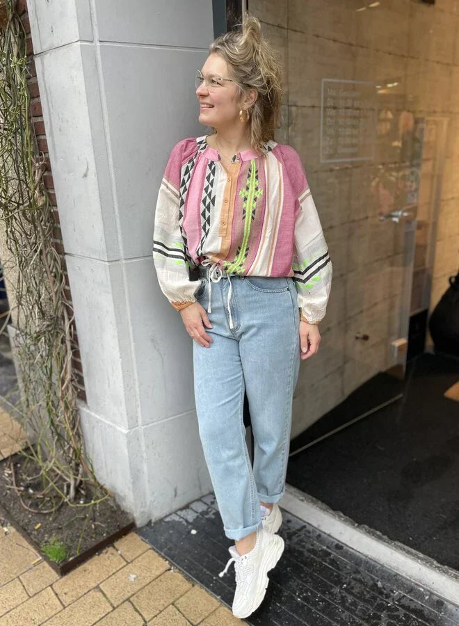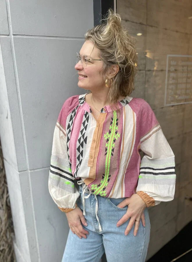 Apportez de la couleur et du style à votre quotidien avec ce chemisier à rayures colorées, un choix idéal pour allier confort et élégance en toute occasion.