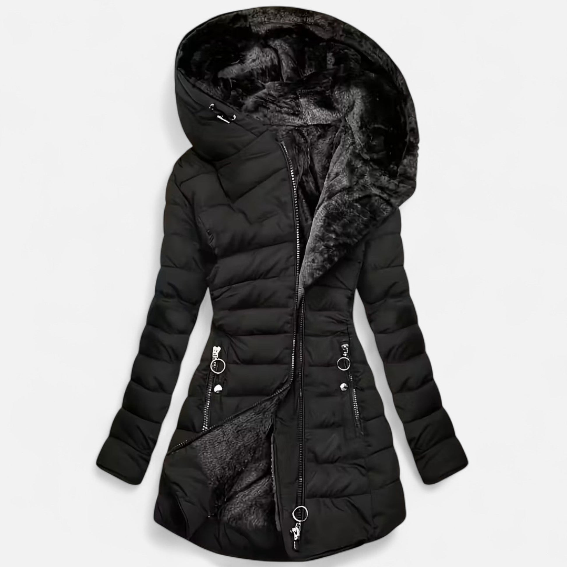 Léontyne | Veste Femme Longue Slim Fit avec Capuche et Doublure Polaire
