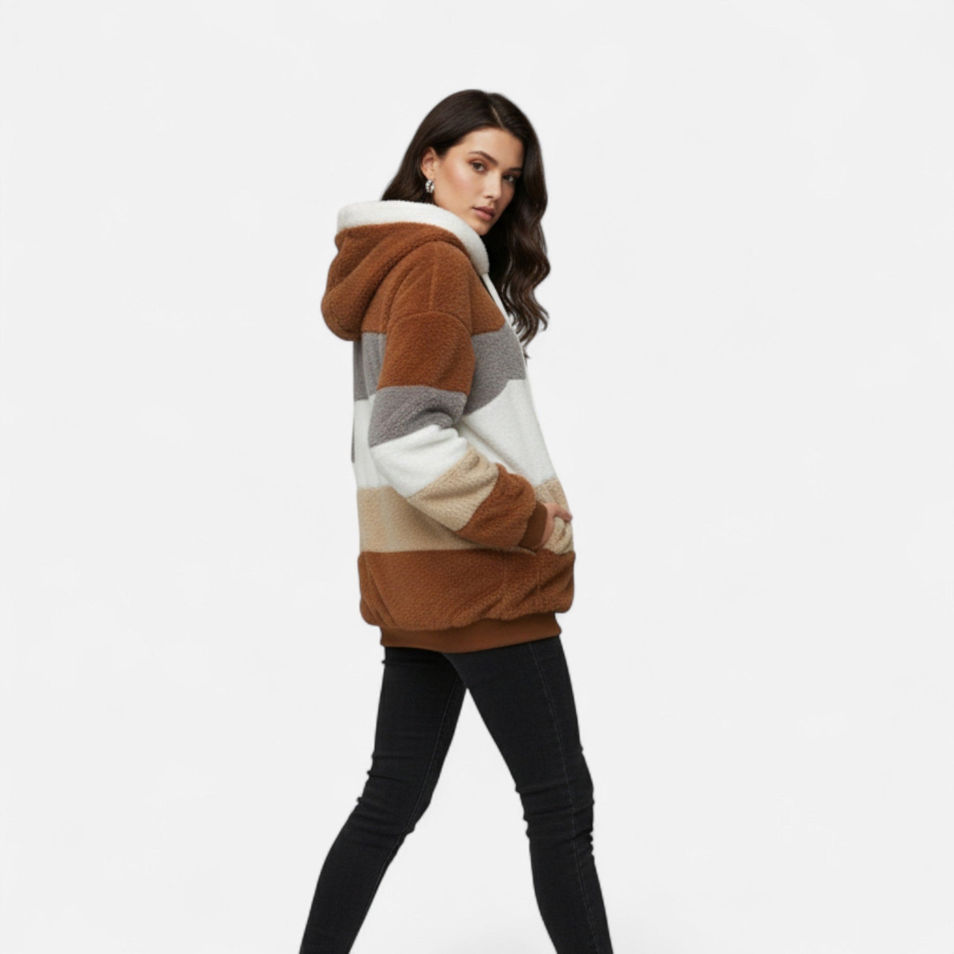 Maïwenn | Veste Femme Oversized à Capuche Rayée Automne Hiver