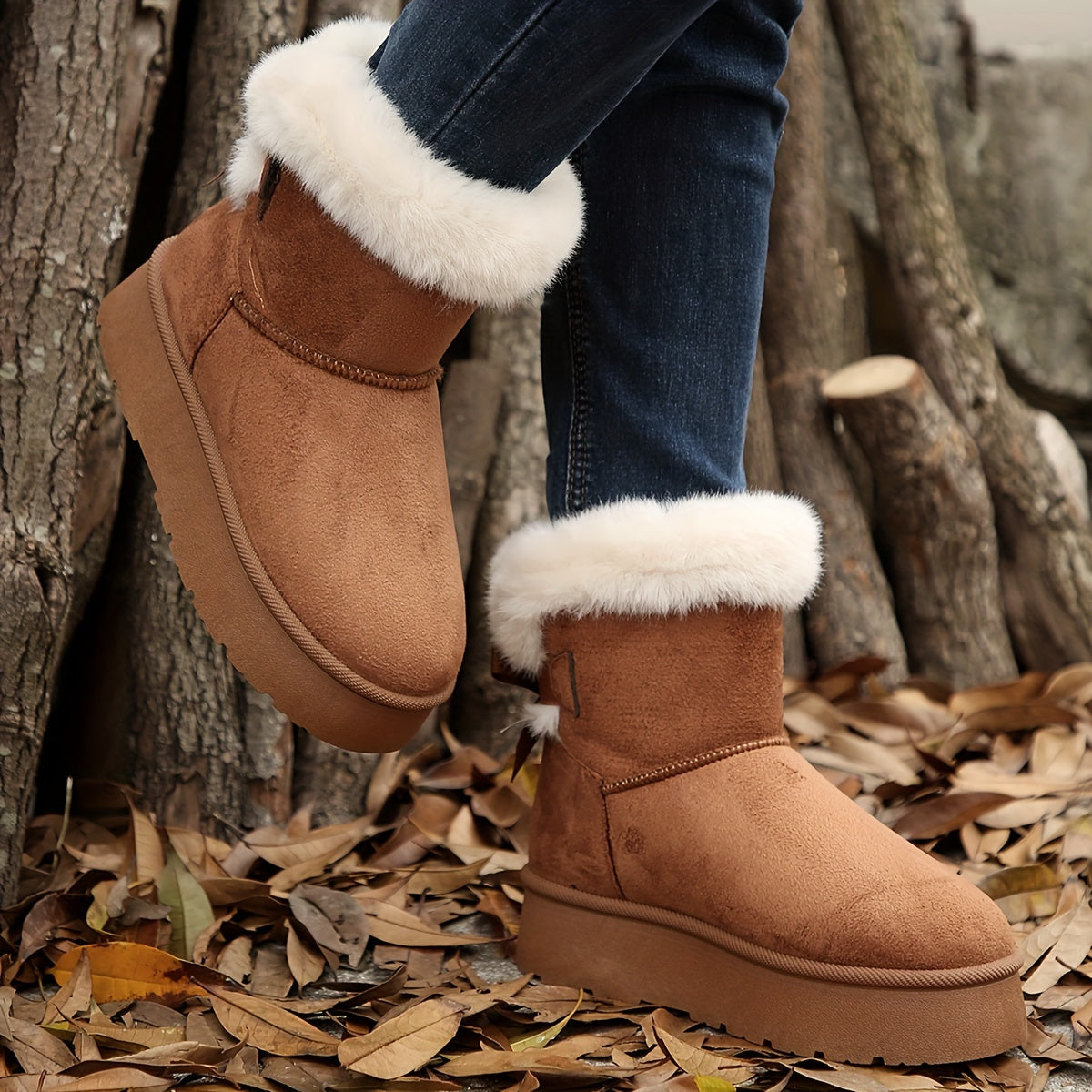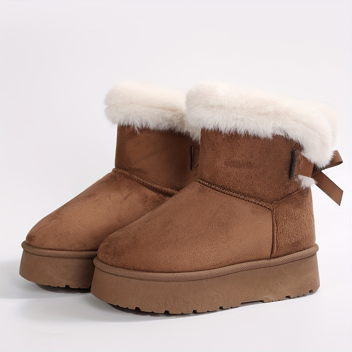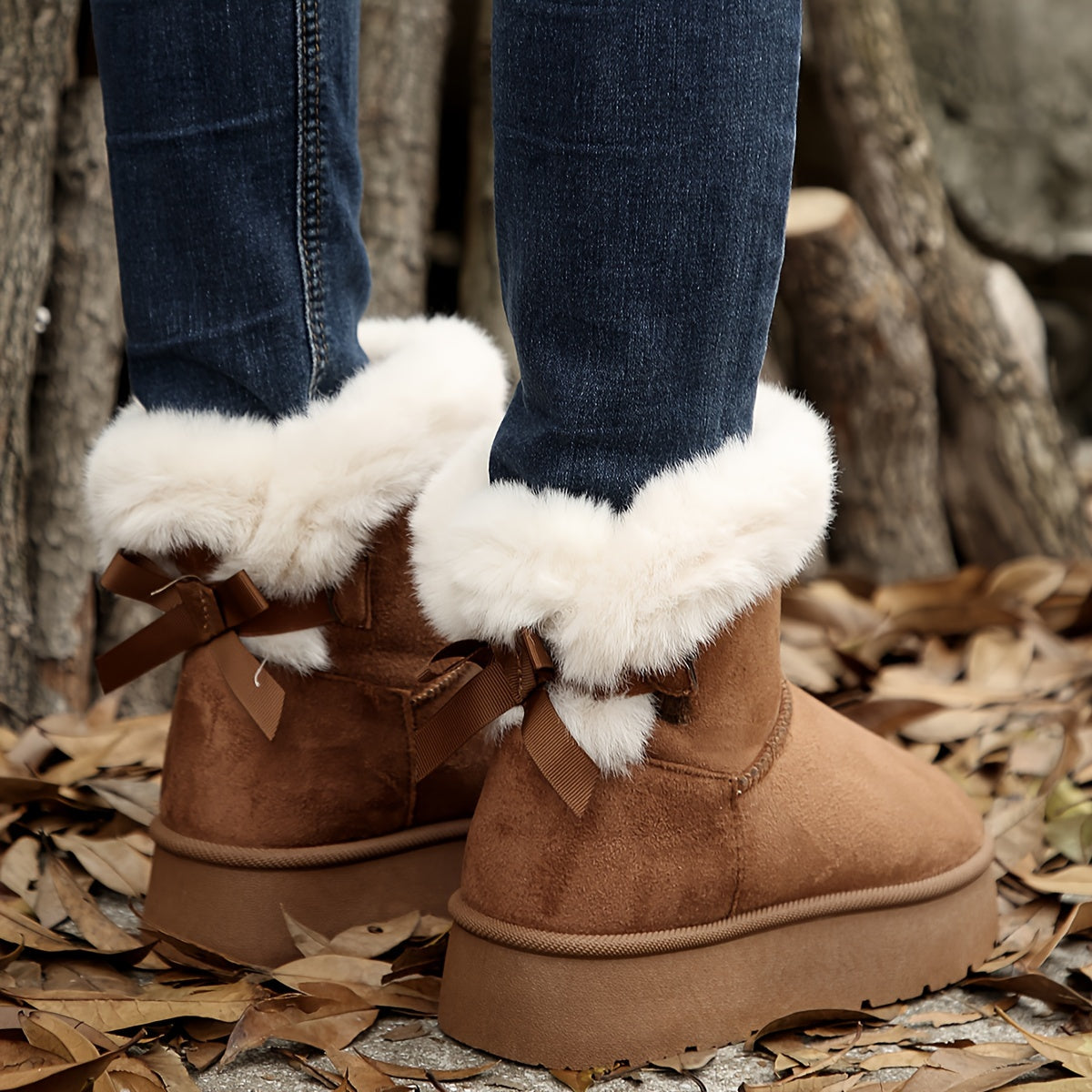 Ménina | Bottes d’Hiver Femme à Semelles Épaisses avec Nœud, Doublure en Fausse Fourrure