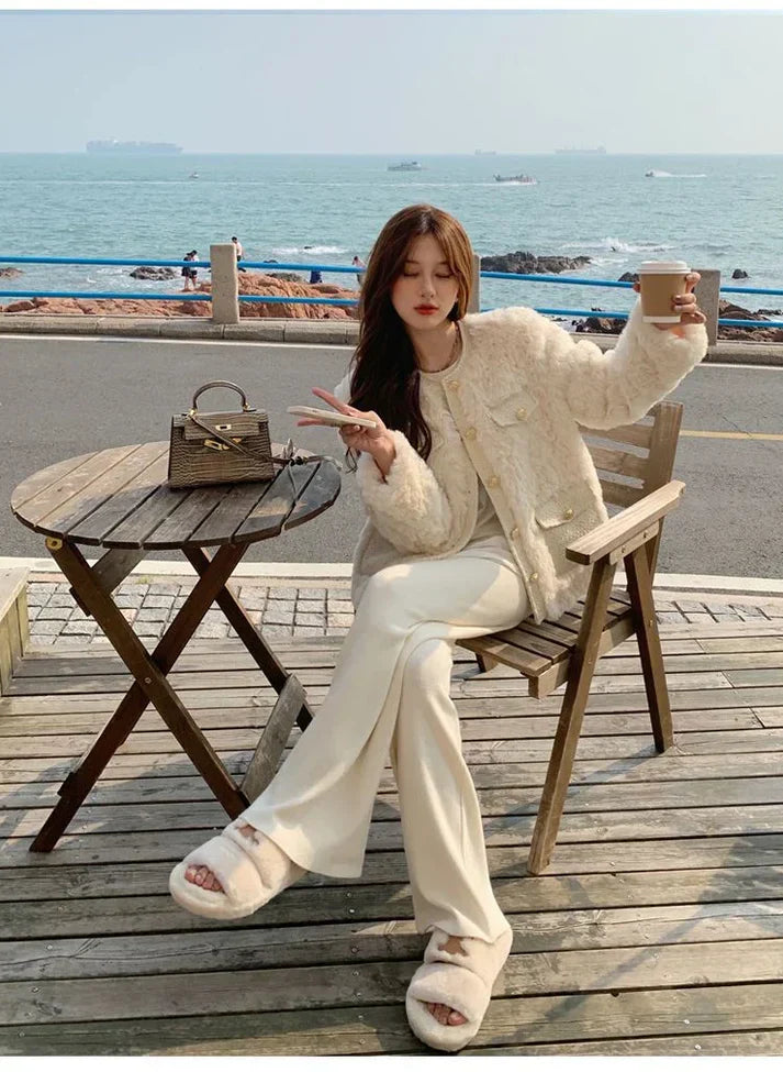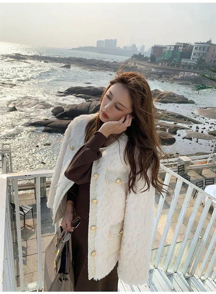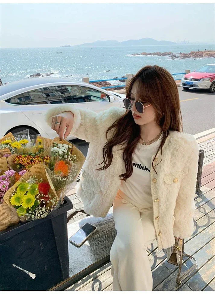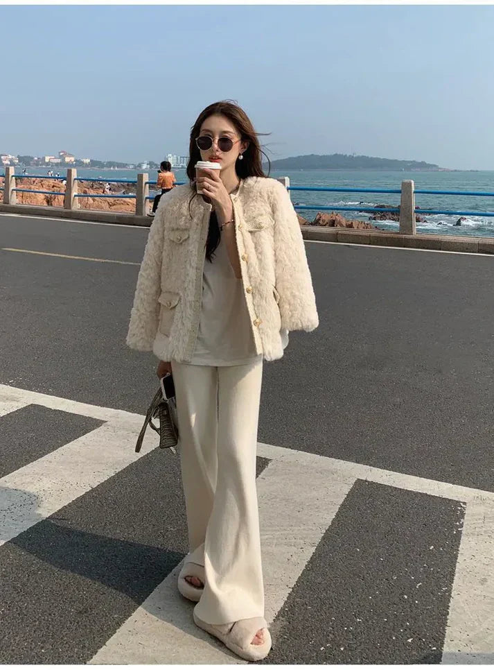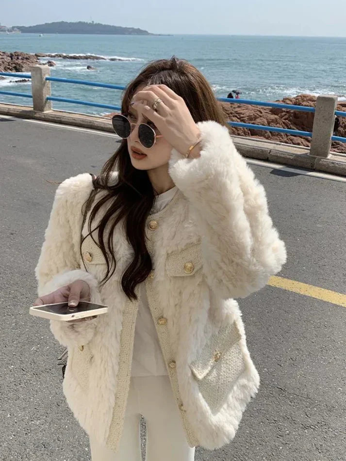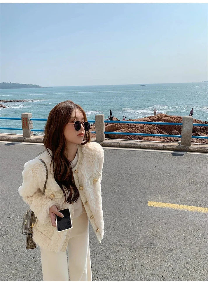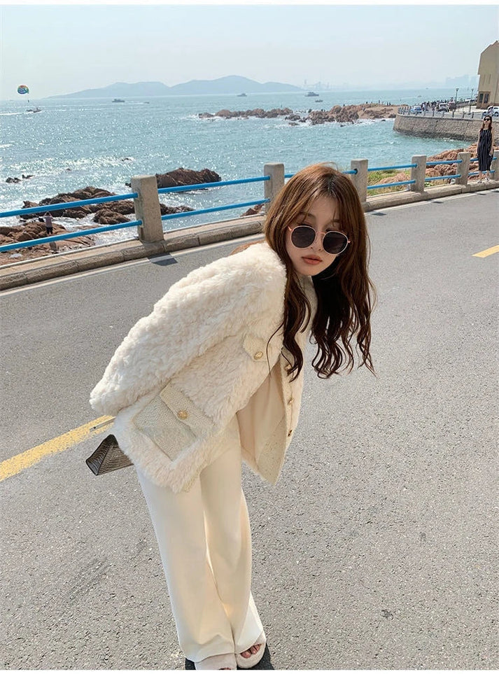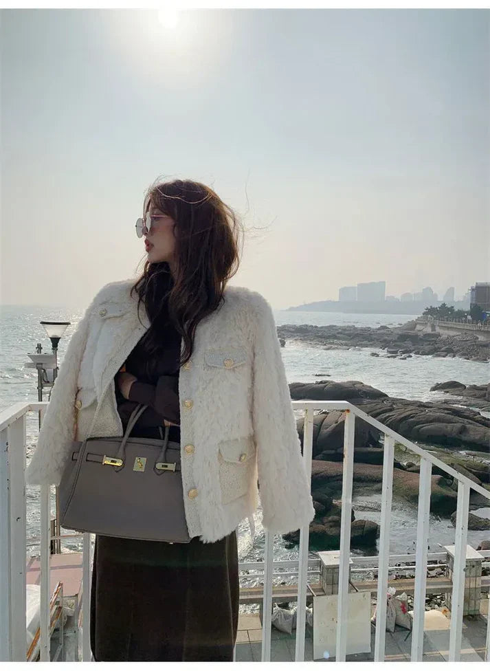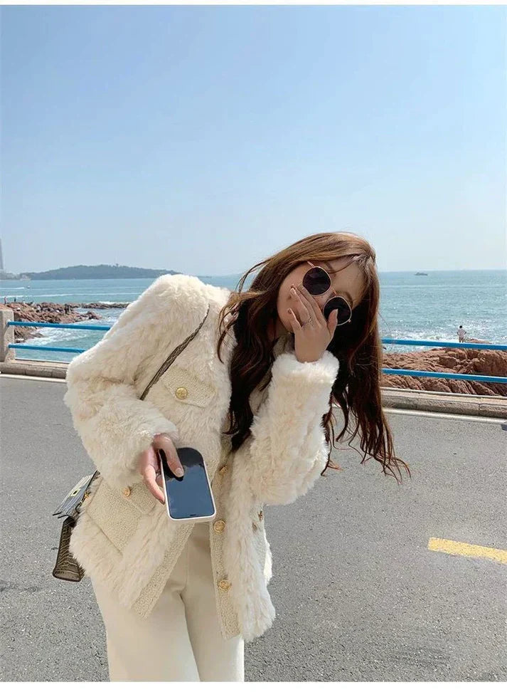 Solange | Veste Teddy Douce et Chaude en Peluche Boutonnée - Couleur Blanche
