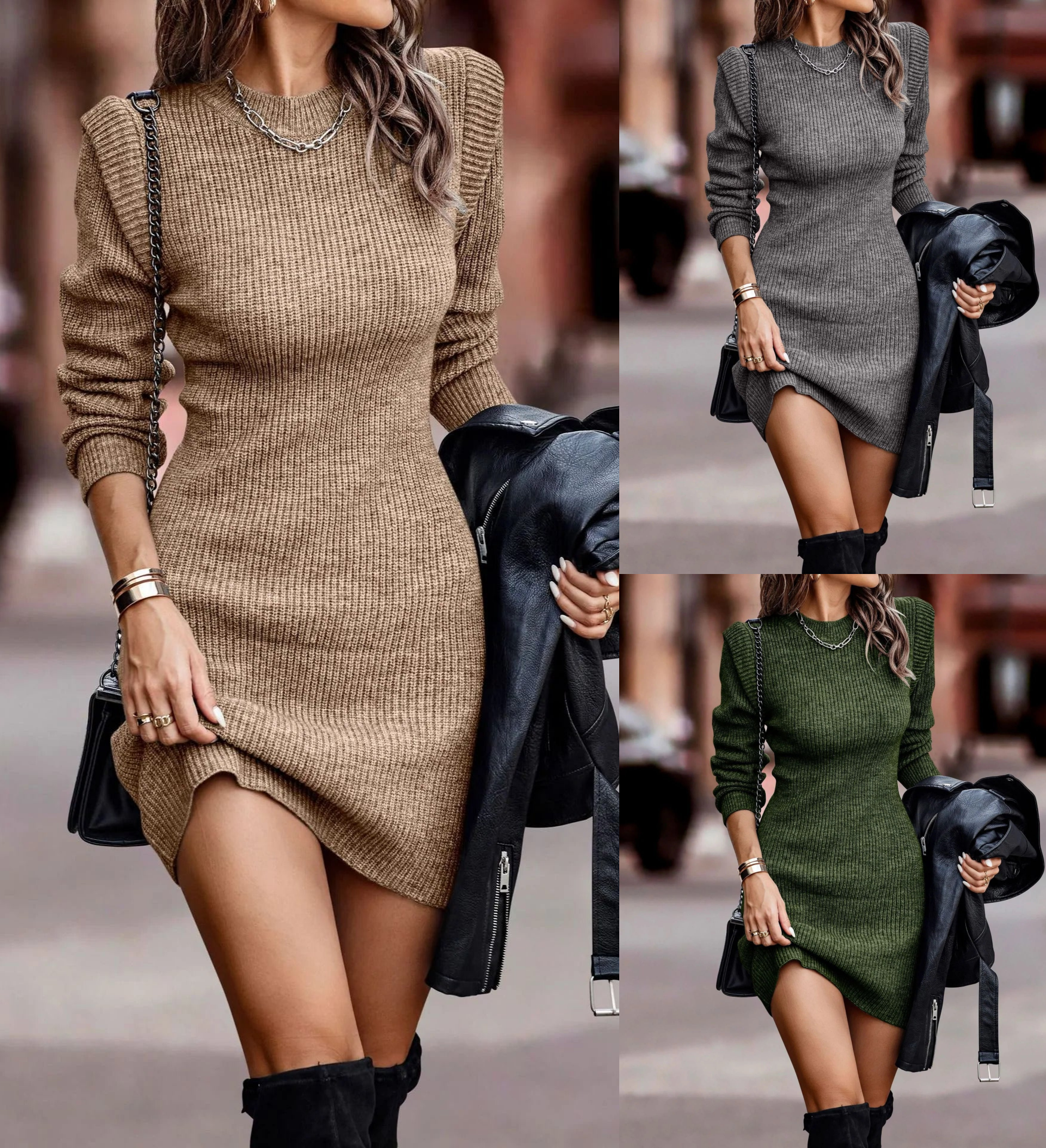 Morgane | Robe Mini Tricotée Ajustée à Manches Longues et Col Rond pour Femme