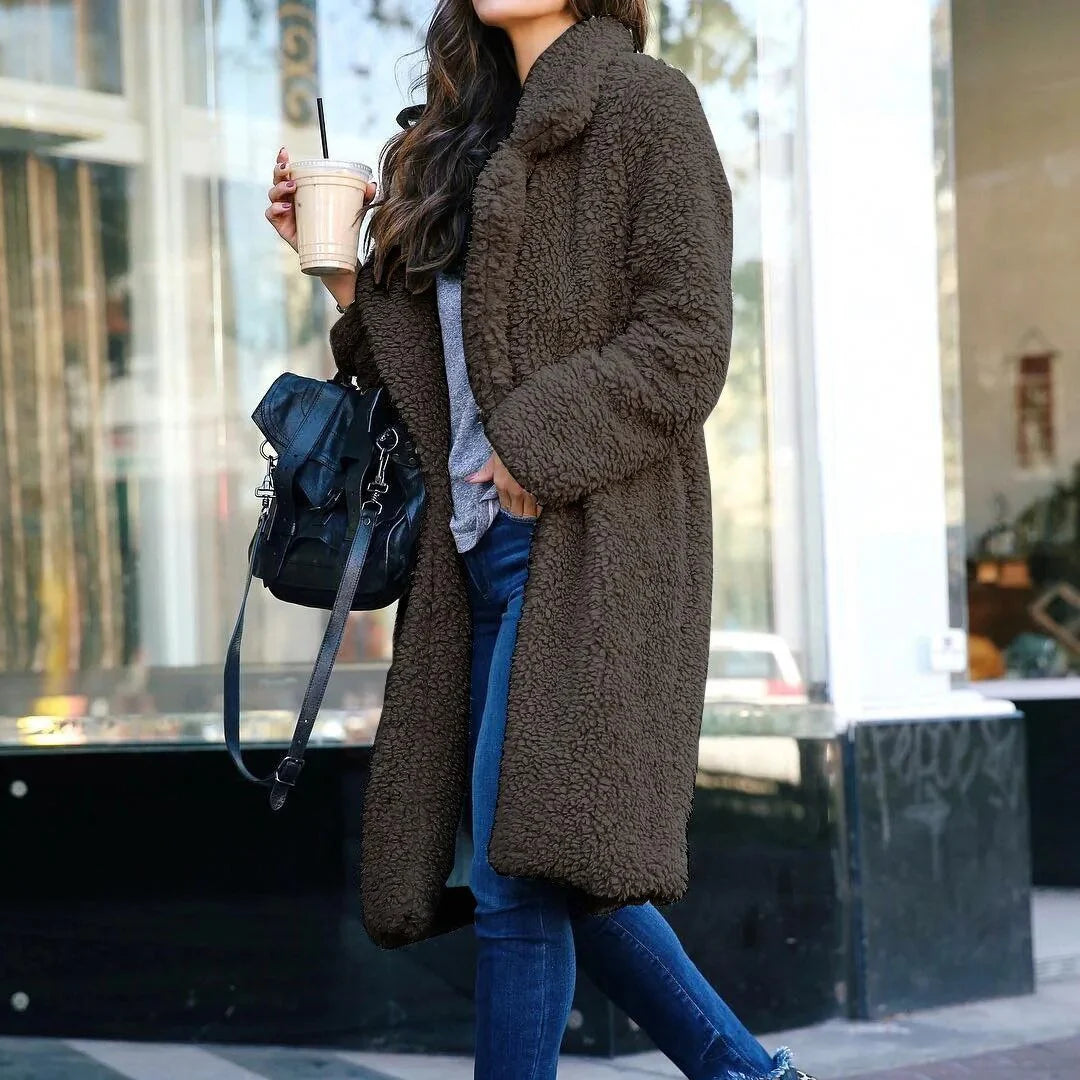 Amandelle | Manteau Long en Teddy Doux et Pelucheux pour Femme – Élégance et Confort
