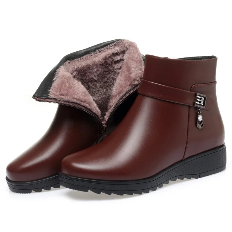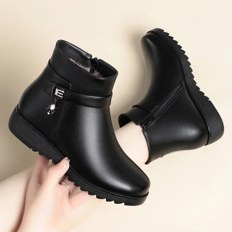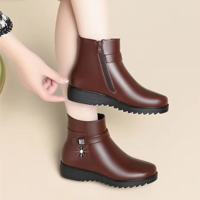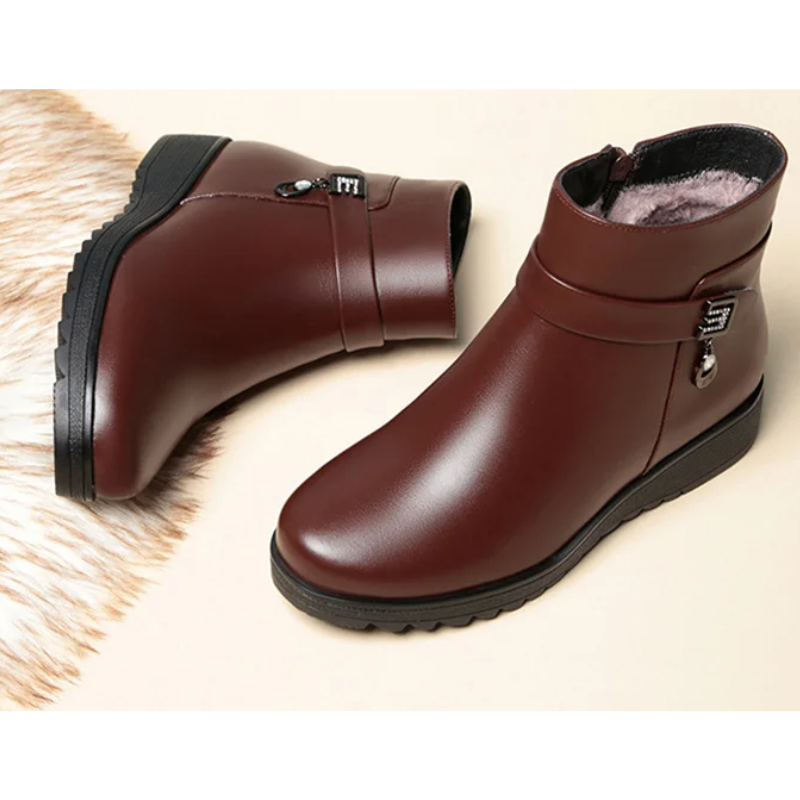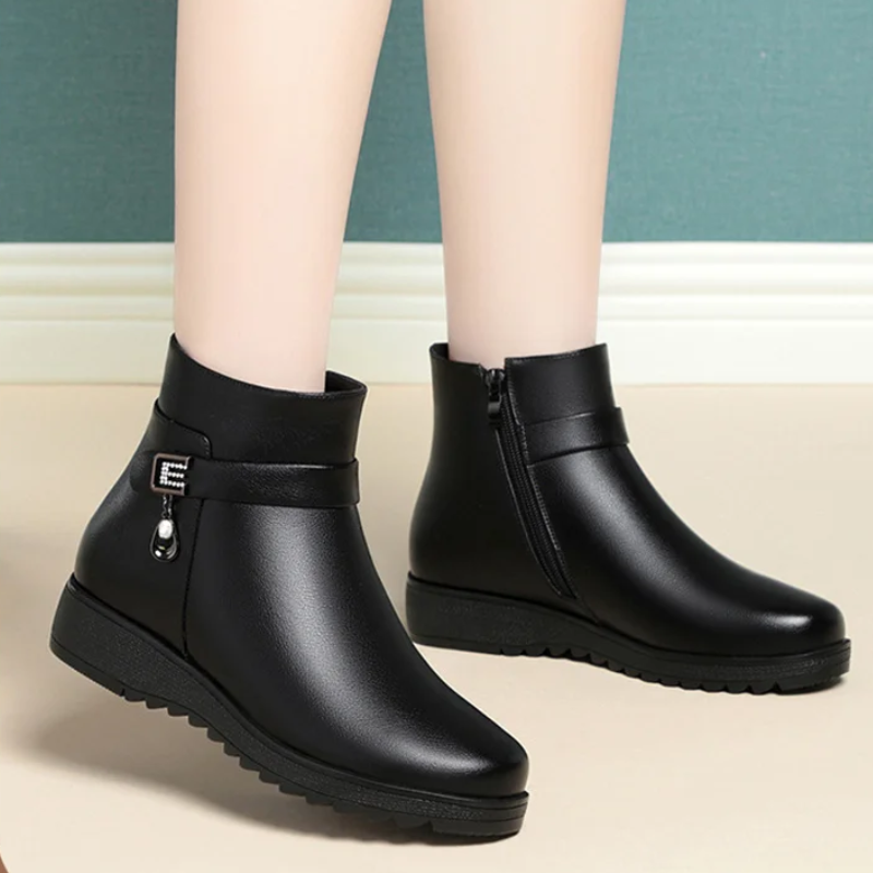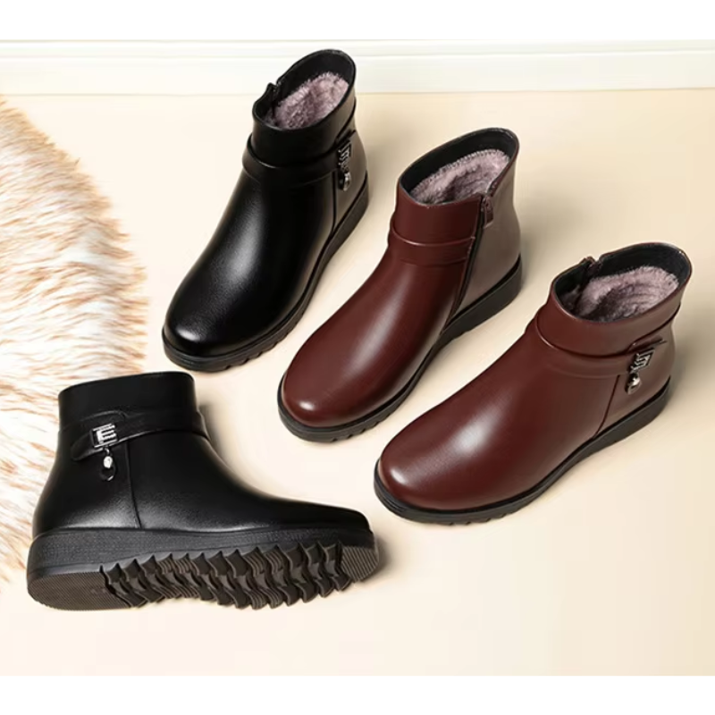 Jonalise | Bottines pour femme à fermeture éclair latérale, doublure en polaire, talon plat, coloris uni