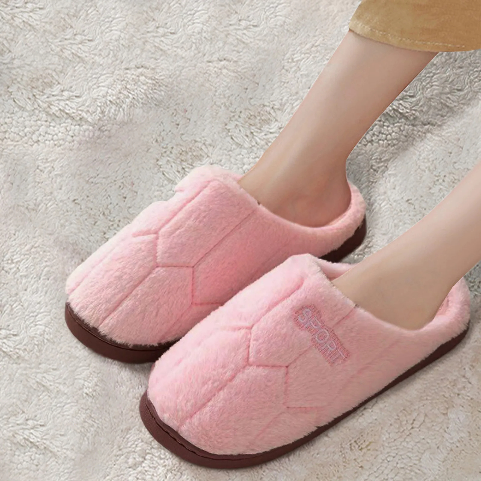 Yselle | Chaussons d'hiver pour femme à bout fermé, semelle souple, broderie "Sport" et tissu peluche doux
