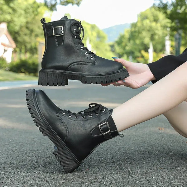 Kermina | Bottes à Lacets en Cuir à Semelle Plateforme pour Femme – Style Tendance et Élégant