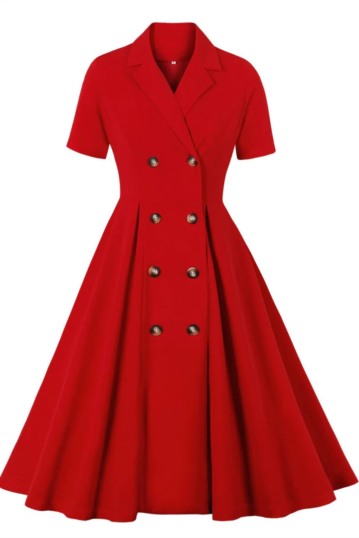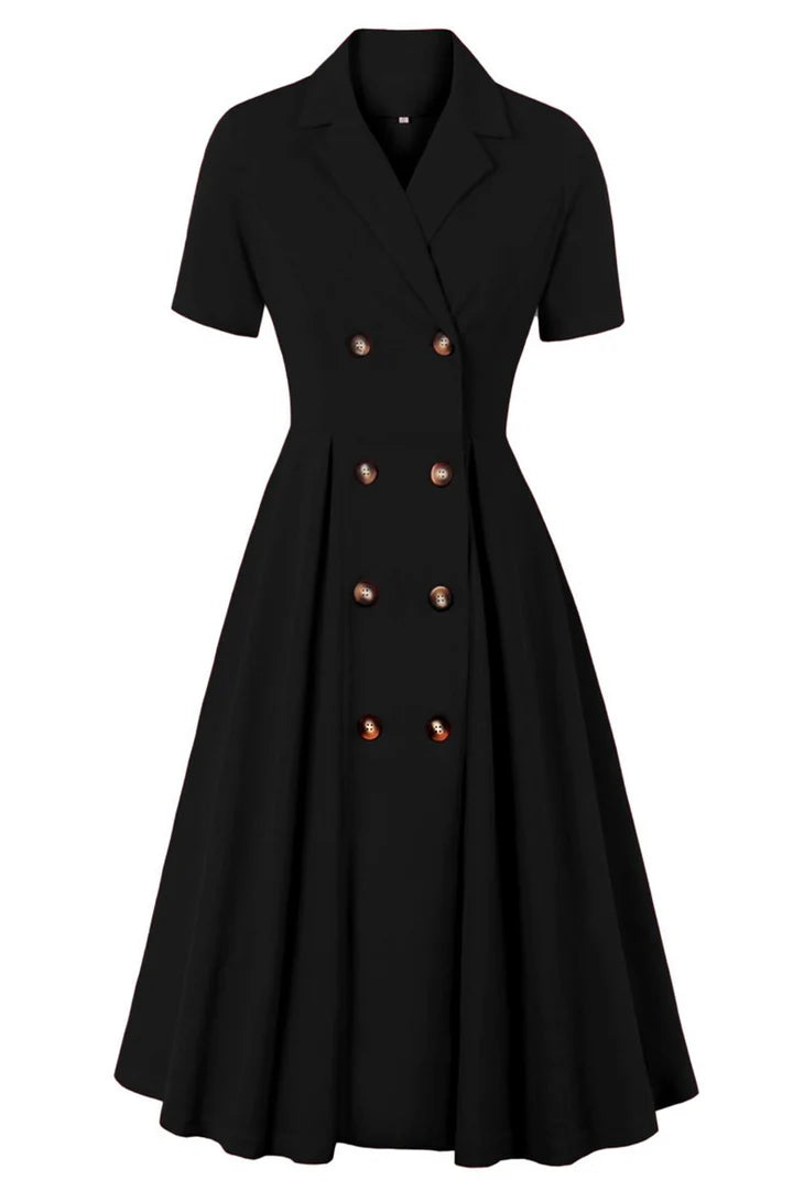 Solandra | Robe Midi Double Boutonnage avec Manches Bouffantes