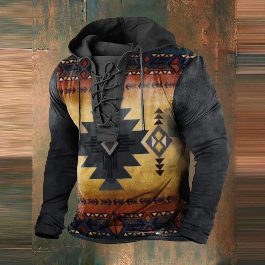 Clovis | Sweat à Capuche Vintage à Cordon et Col à Nouer avec Imprimé Tribal pour Homme