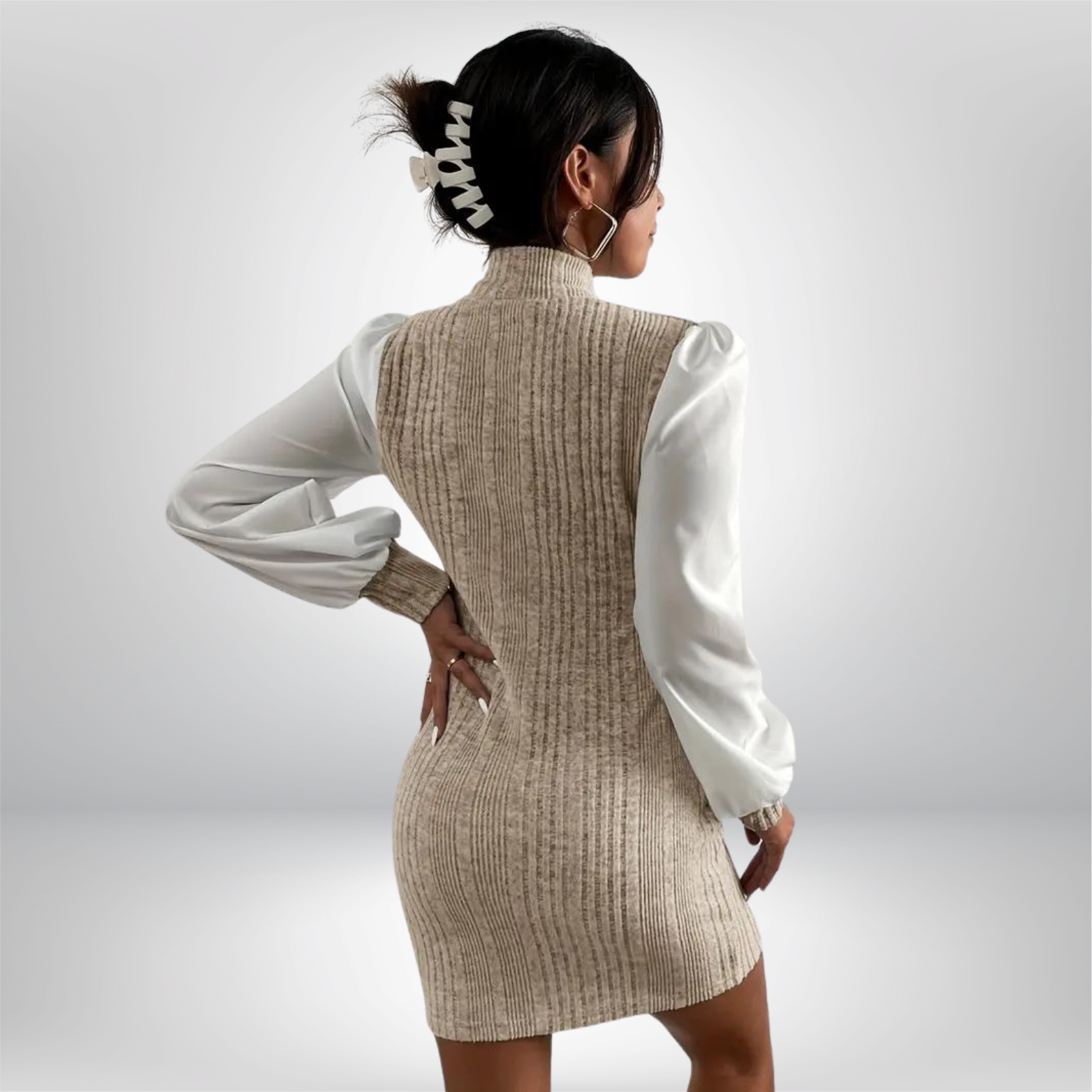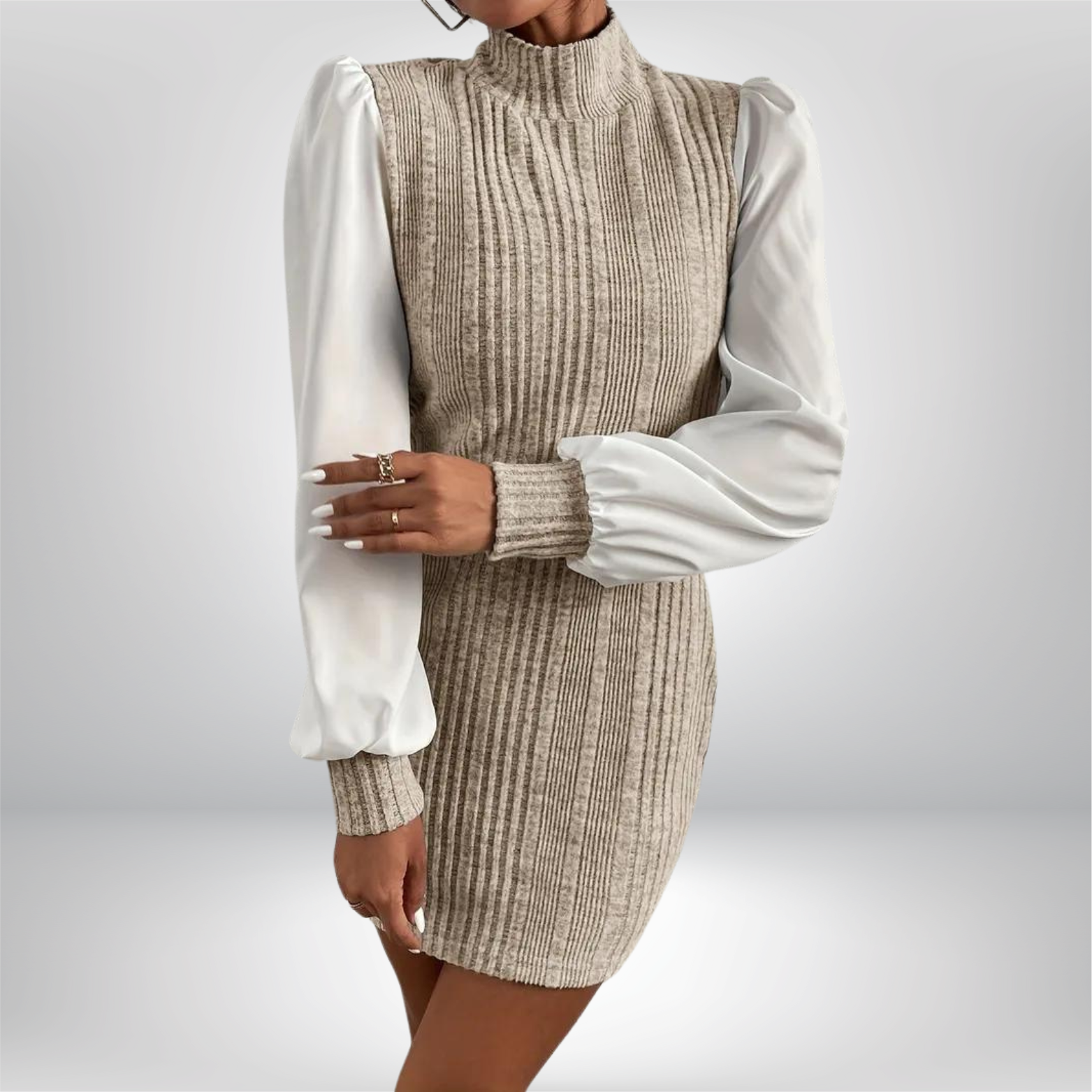 Olympe | Robe Mini Tricotée à Col Montant et Manches Longues