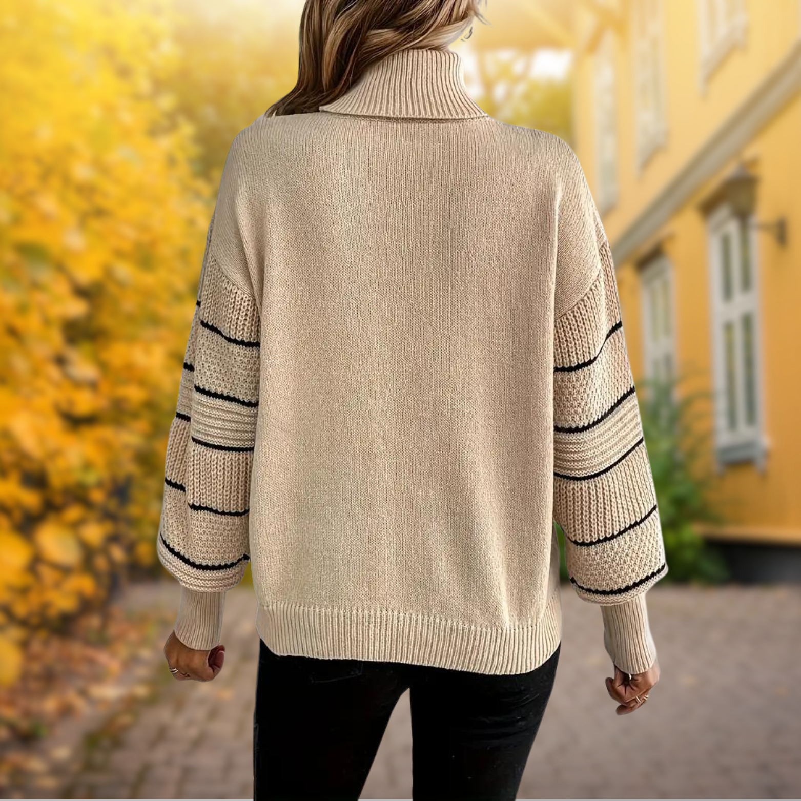 Stelle | Pull à col roulé tricoté avec manches rayées – Élégance et chaleur