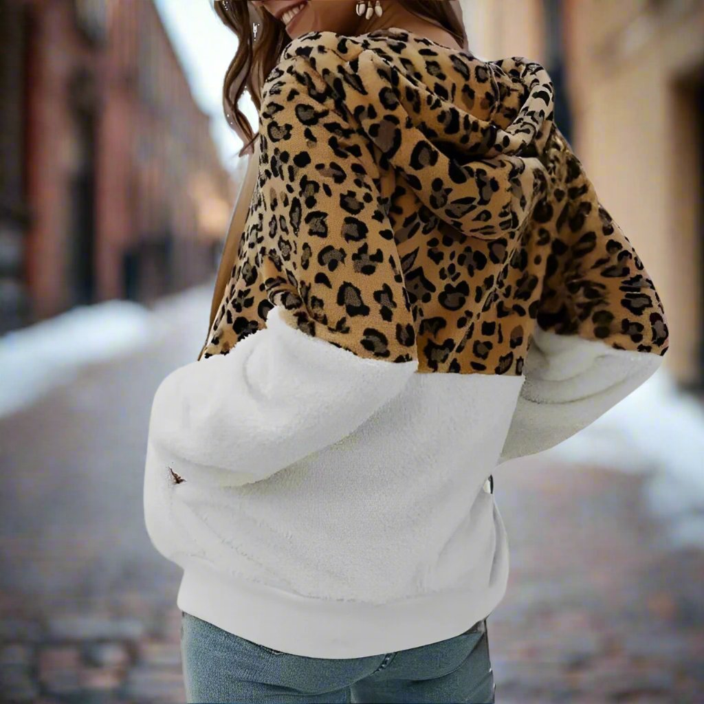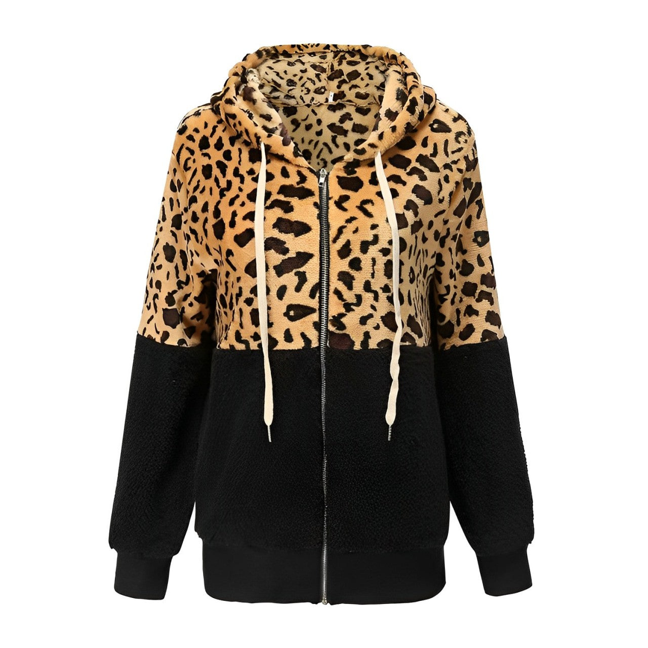 Jessamine | Veste à Capuche zippée en Fausse Fourrure avec Imprimé Léopard pour Femme