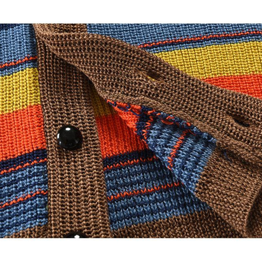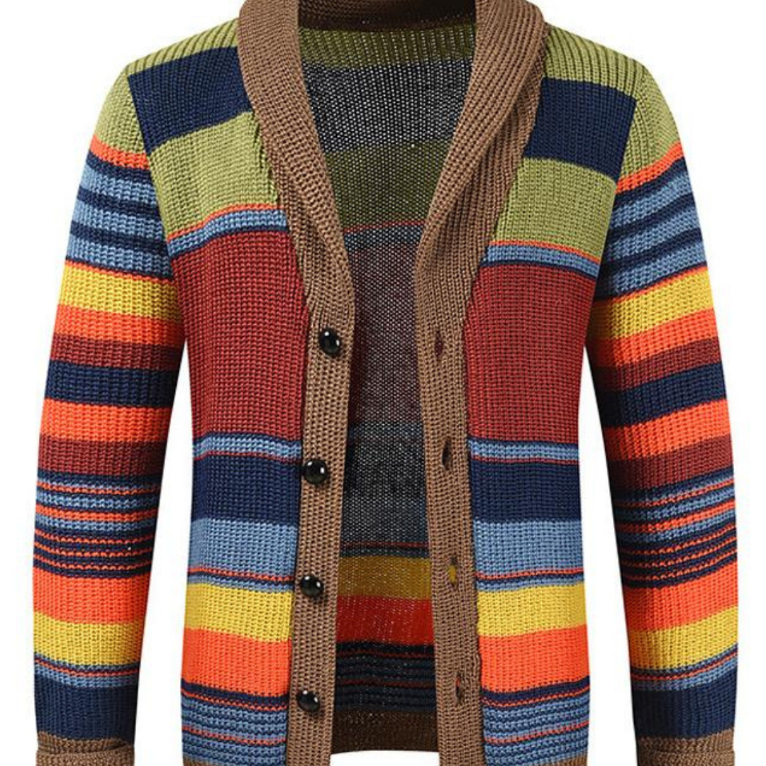 Uwenun | Cardigan Boutonné en Laine Rayé Multicolore pour Homme